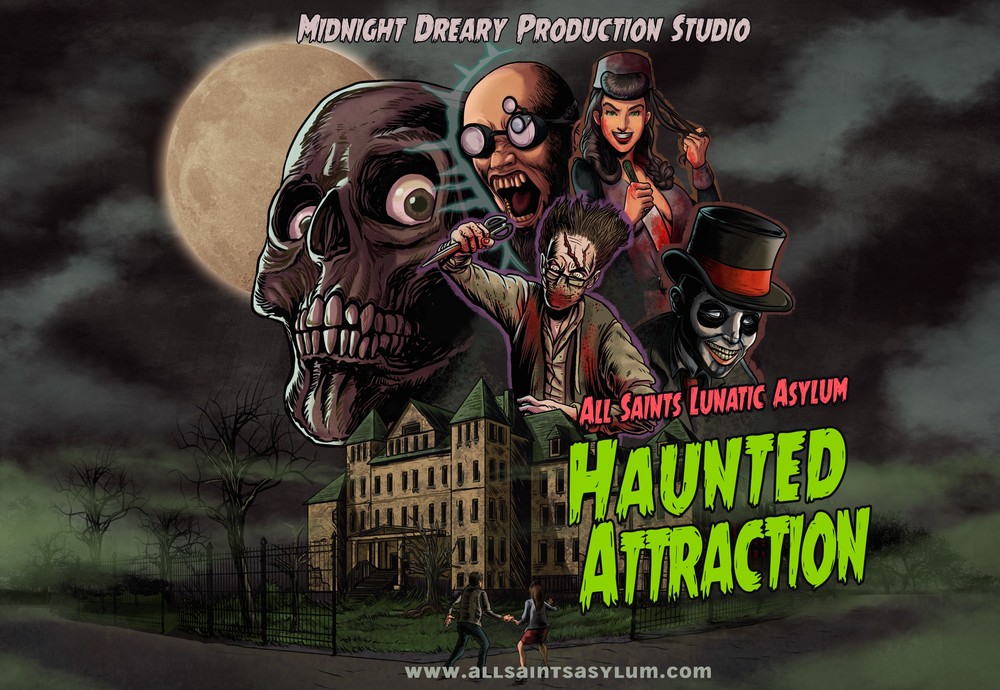 All Saints Lunatic Asylum is a professional year round haunted attraction open for most major holidays and every Friday the 13th.