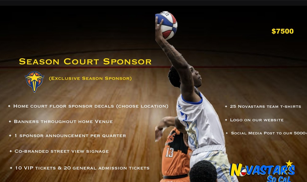 Purchase this exclusive sponsorship package to extend your brand reach beyond the court and into the hearts of the community. Join us in bringing excitement and joy to our fans while putting your brand in the spotlight. Customize your package further upon request and let's partner up for an unforgettable season together.